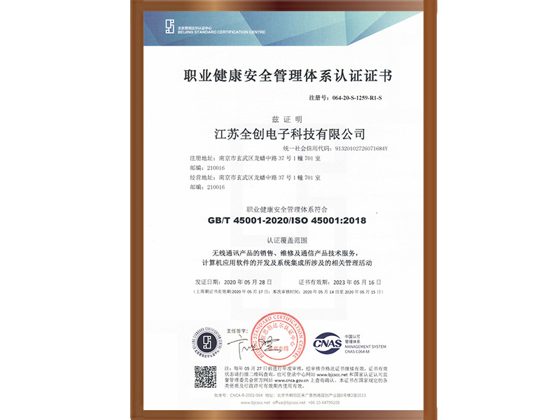 全創建有完善的管理保證體系,通過了質量管理體系認證、環境管理體系認證、職業健康管理體系認證和信息安全管理體系認證,保障為客戶提供高標準的產品和服務。