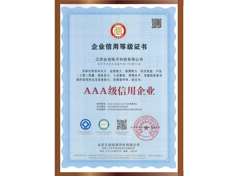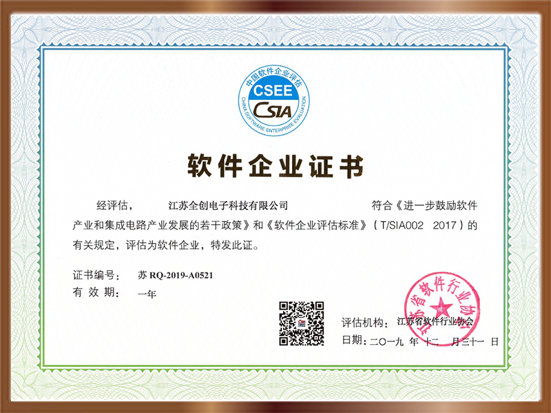 公司先后獲得“高新技術企業”“AAA信用等級企業”“江蘇省民營科技企業”“軟件企業”等榮譽資質。
