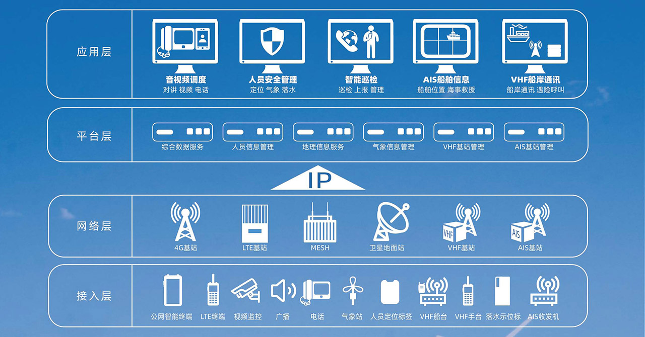 VHF船岸通訊 AIS船舶位置 智能語音播報 氣象信息 | 風場內部通訊 數(shù)字調度系統(tǒng) 數(shù)字錄音系統(tǒng) 網絡管理系統(tǒng) | 高速寬帶數(shù)傳 應急寬帶鏈路 視頻數(shù)據(jù)傳輸 多媒體業(yè)務調度 |